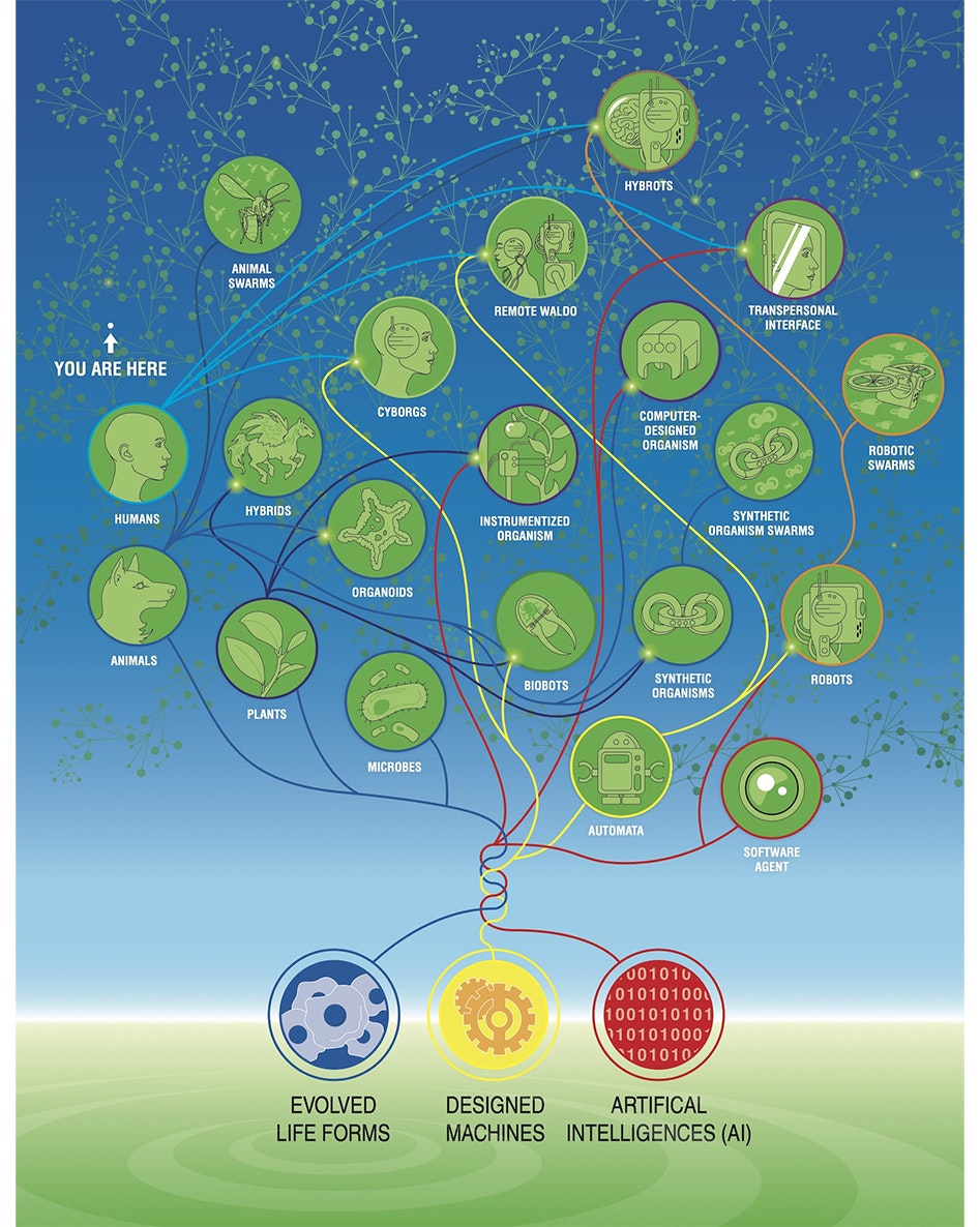 Our goal must be to expand our narrow ability to recognize minds and learn to flourish among many different kinds of intelligence, from humans to AI to weirder and more wonderful beings that will arrive in the future. You might call this concept synthbiosis: the quest to develop mutually beneficial relationships between radically different beings that are evolving together, at different rates and in different directions, in the web of life on Earth and beyond.
